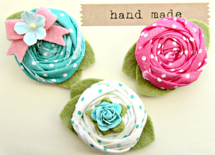 Here is a springy hair clip set now available in the shop! I love the shabby chic polka dot fabric in bright spring colors!